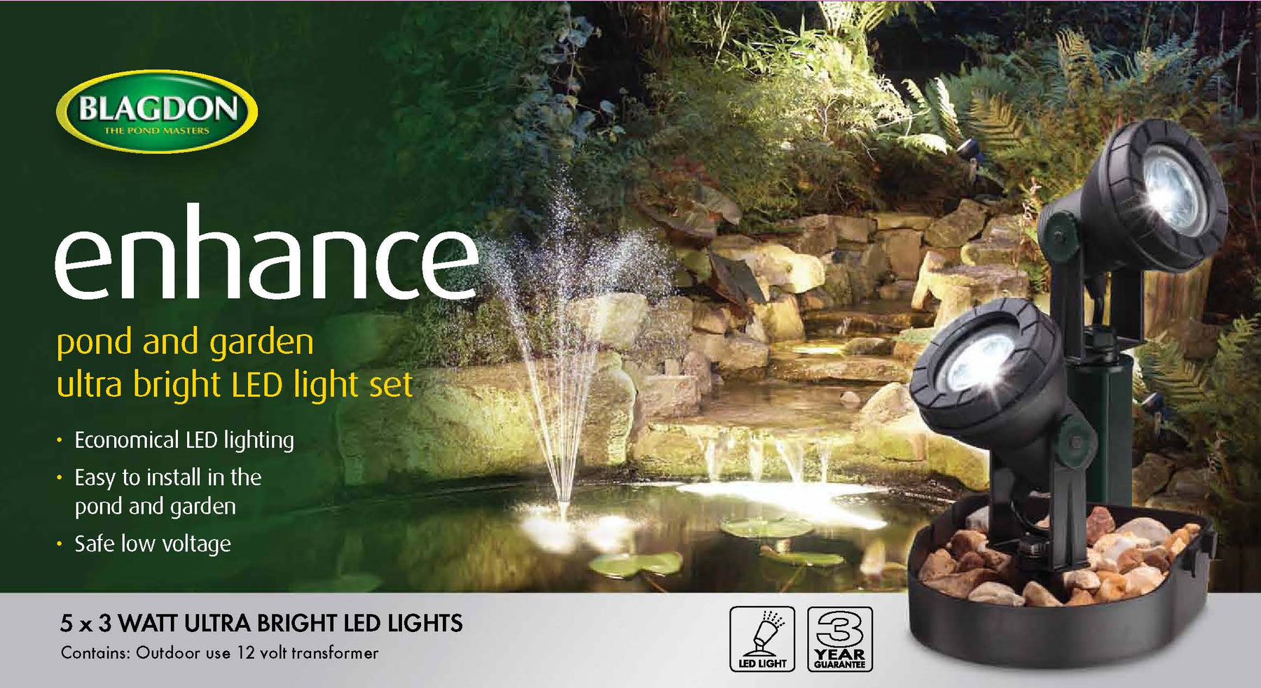 Transform your outdoor space into a magical nighttime oasis with the Blagdon Amphibious Light Sets – high-quality pond lighting that's as functional as it is beautiful.